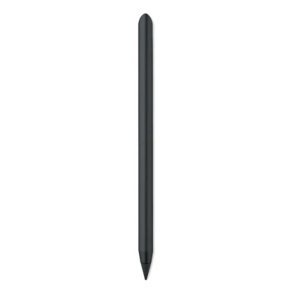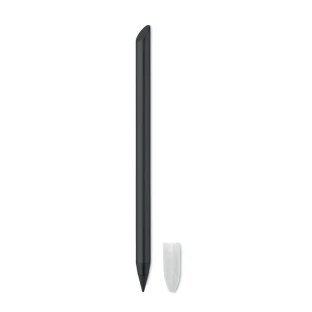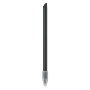 Długopis pisze za pomocą grafitowej końcówki z plastikową osłoną.